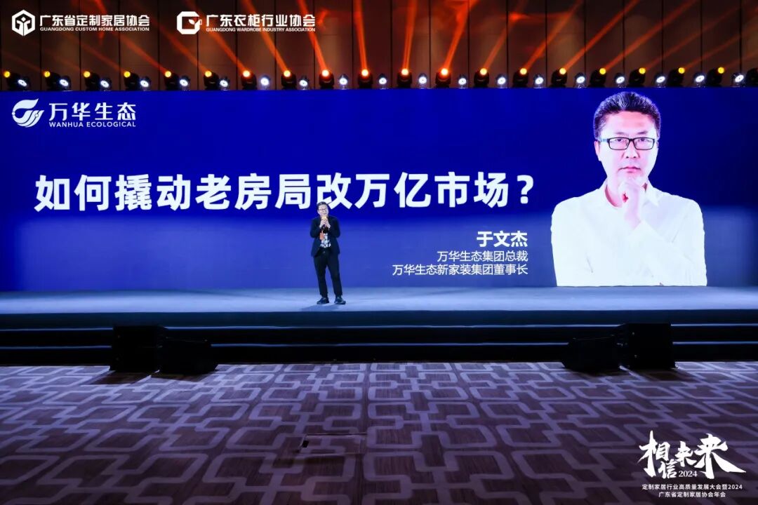 他提出,万华生态从定制家居行业的板材供应商到装修行业的材料供应商,希望将来能够赋能定制行业,和大家共同分享局改流量,赋能定制行业一起进入老房时代,迎来行业发展的第二增长曲线。