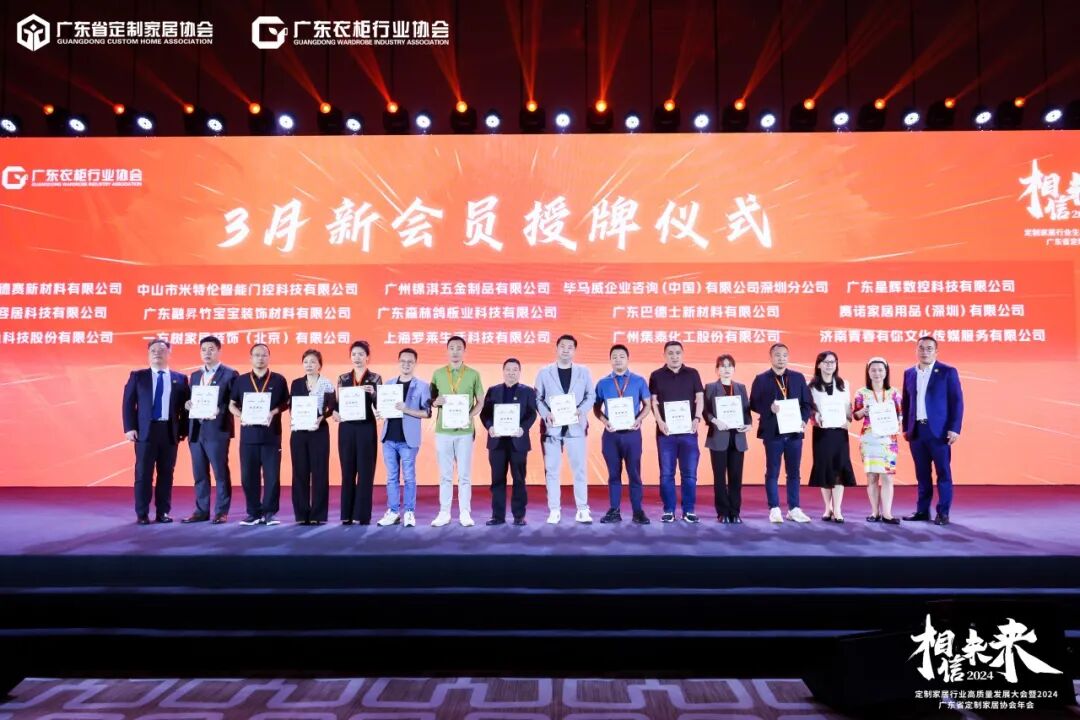 相信未来,勇往直前。“相信未来”——定制家居行业高质量发展大会暨2024广东省定制家居协会、广东衣柜行业协会年会落下了帷幕,协会将继续发挥一贯的服务宗旨,发挥桥梁媒介的力量,凝聚会员企业,多维度赋能助推行业发展!