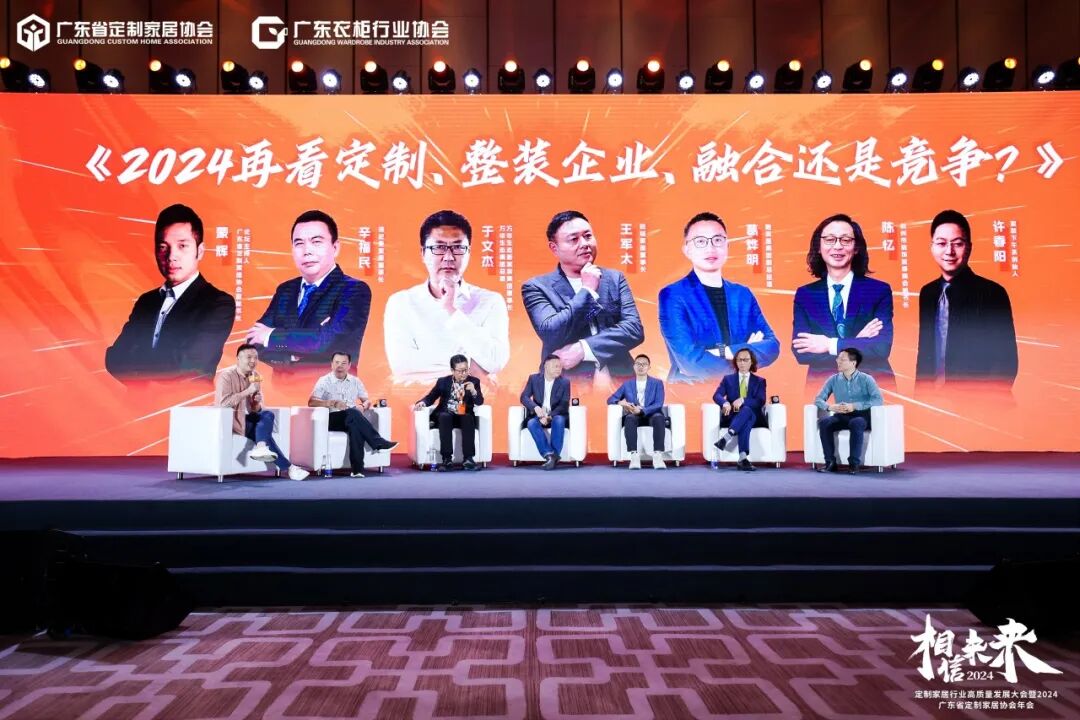 本次大会的第二个论坛,也是最后一个论坛——《2024再看定制,整装企业,融合还是竞争?》,新模式家装要如何赋能定制行业?定制与家装,原本两个相异的赛道,为满足消费者家装一体化需求逐渐走进彼此。双方在相互了解、跨越、融合的过程中,定制企业如何理解整装?整装企业如何理解定制?双方未来更多的是融合还是竞争?大会论坛请到了诗尼曼家居董事长辛福民、万华生态集团总裁/万华生态新家装集团董事长于文杰、冠特家居董事长王军太、靓家居集团副总经理葛烨明、杭州市装饰装修商会陈忆、家装下午茶创始人许春阳,以及本场论坛的主持人:广东省定制家居协会副秘书长蒙辉,伴随着问答的碰撞,分享企业各自在在当前大环境的表象之下,如何洞穿迷雾,破解产业底层逻辑、寻找新的发展道路。