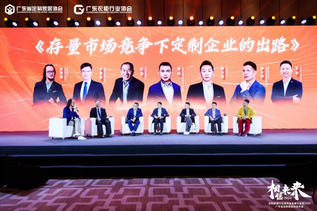 第一个论坛《存量市场竞争下定制企业的出路》邀请到了尚品宅配总经理李嘉聪、百得胜董事长张健、玛格家居董事长唐斌、博洛尼CEO蔡兴国、卡诺亚董事副总裁赖永精、TATA木门副总裁张岩,以及本场论坛的主持人:如然文化创始人张泽葵,进行主题为"存量市场竞争下定制企业的出路"的深度探讨与反思定制家居当前竞争业态与未来市场趋势,聚焦存量市场企业的生存法则与发展路径,并对企业经营方向与方法论进行深度探讨和交流。