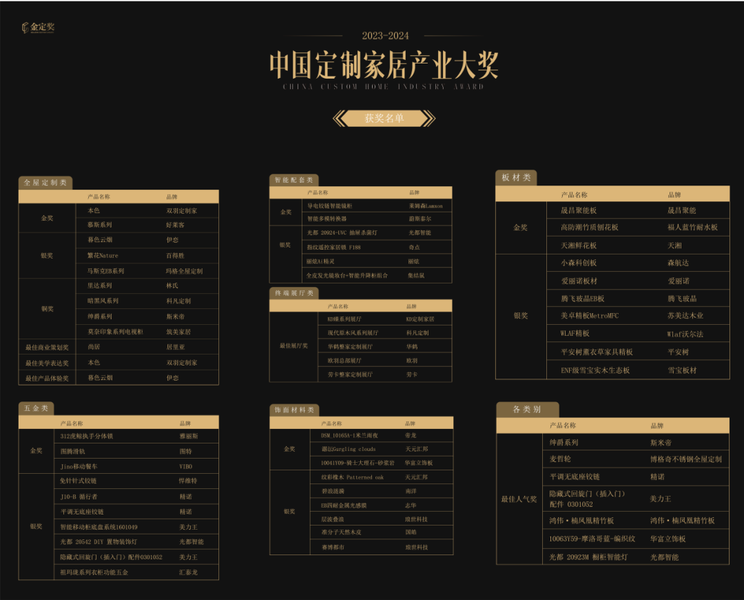 广东省定制家居协会荣誉会长、索菲亚集团总工程师张挺在开幕致辞中说到,中国定制家居行业已经进入多元化的存量时代和创新驱动时代,为了鼓励行业创新,奖励创新成果,打造最具影响力和产业推动价值的权威评选,推动优秀产品、技术和模式的广泛应用。金定奖将强力塑造中国定制创新力量的形象,为整个产业链带来创新合力,并为产业集群高质量发展提供助力。