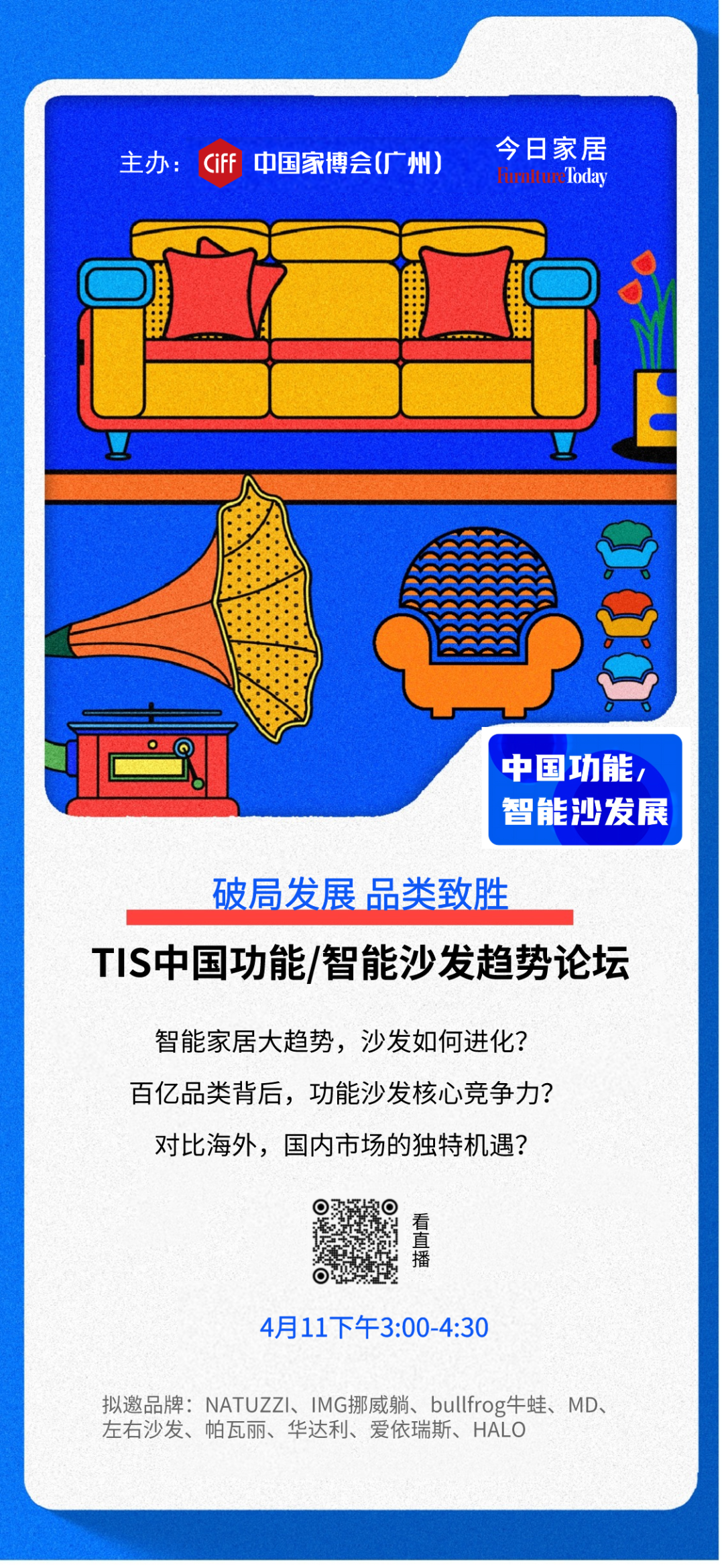 为进一步探讨软体沙发尤其是功能沙发赛道未来发展,4月11日,今日家居、中国家博会(广州)联合举办《TIS中国功能/智能沙发趋势论坛》,以“破局发展 品类致胜”为主题,邀请优秀企业代表、设计师代表探索功能沙发百亿规模下的增长新动能!