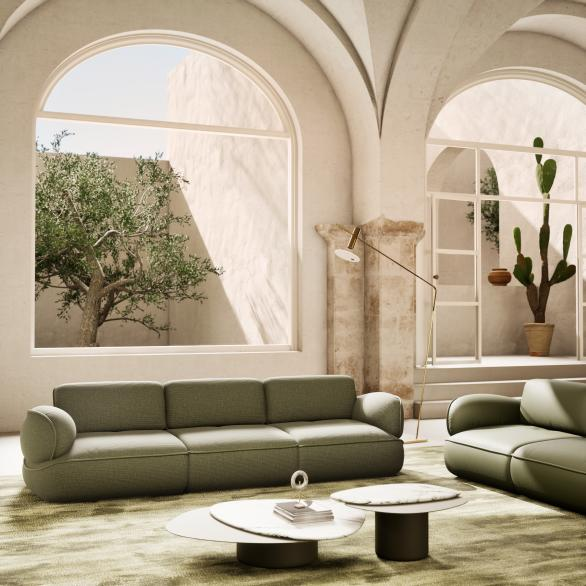 位于展厅中央的新品,是由设计师 Karim Rashid 从品牌 65 周年风格中细致循迹,秉持对物件圆融外观与舒适风格概念的追求,以地中海丘陵与山脉灵感创作出的 Memoria 沙发。以普利亚文化典型的友善好客精神为灵感,其有机形状和起伏轮廓,令人想起该地区线条柔和的山丘,和圆润斜坡。这款作品以摩登手法,重新诠释邂逅之美,践行Natuzzi Italia营造和谐、舒适和设计感的使命。
