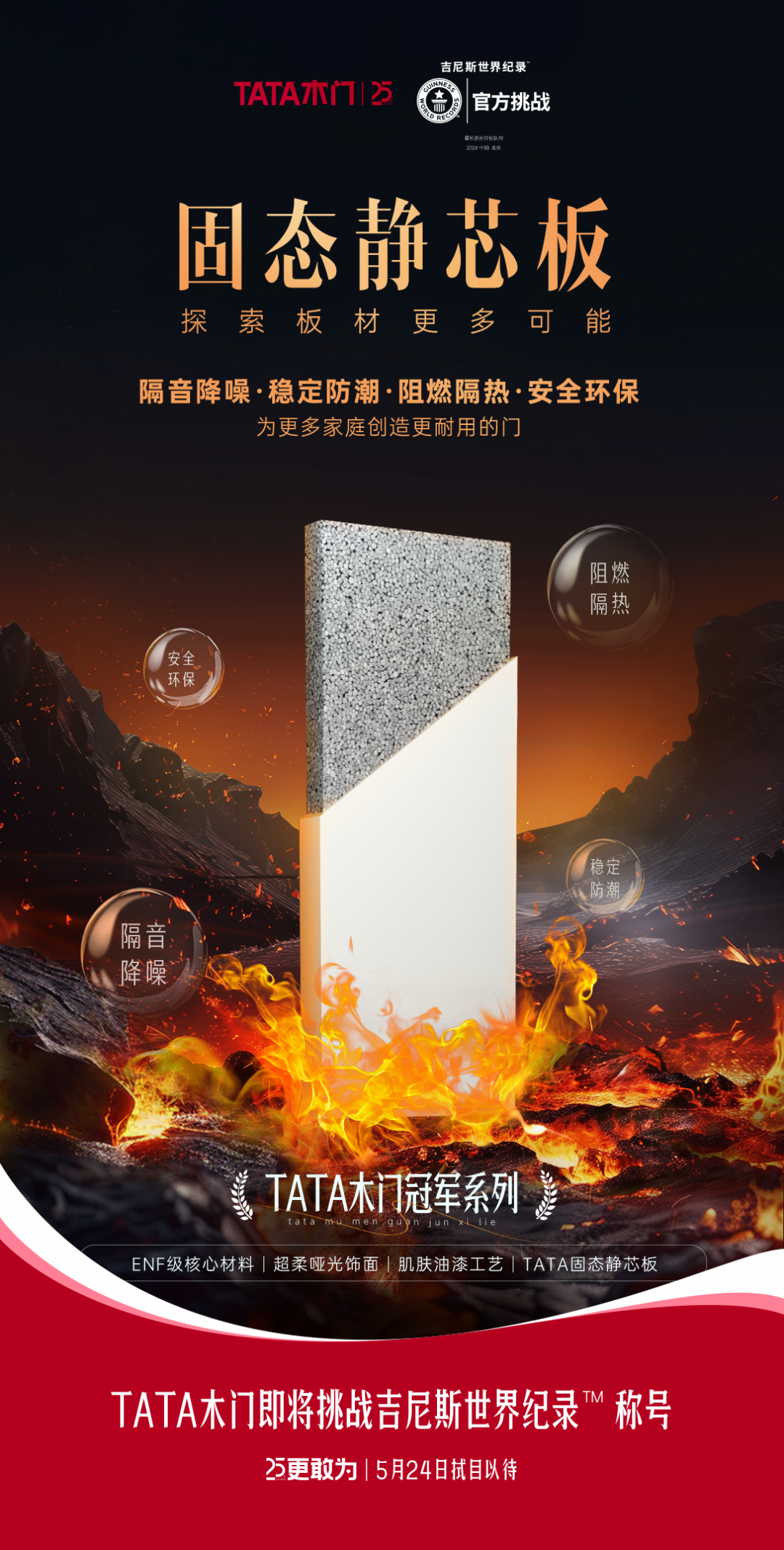 5月24日,TATA木门将向世界最长的静音分贝仪矩阵发起吉尼斯世界纪录挑战,反映了TATA木门坚持实力挑战自身极限,以及对科学降噪核心优势的强大自信。