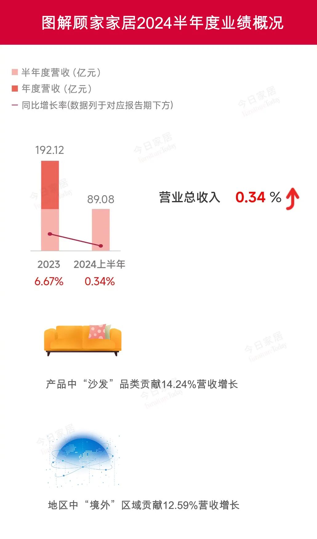2024年8月21日,顾家家居发布了《2024年半年度报告》,2024上半年实现营业收入89.08亿元,同比增长0.34%。