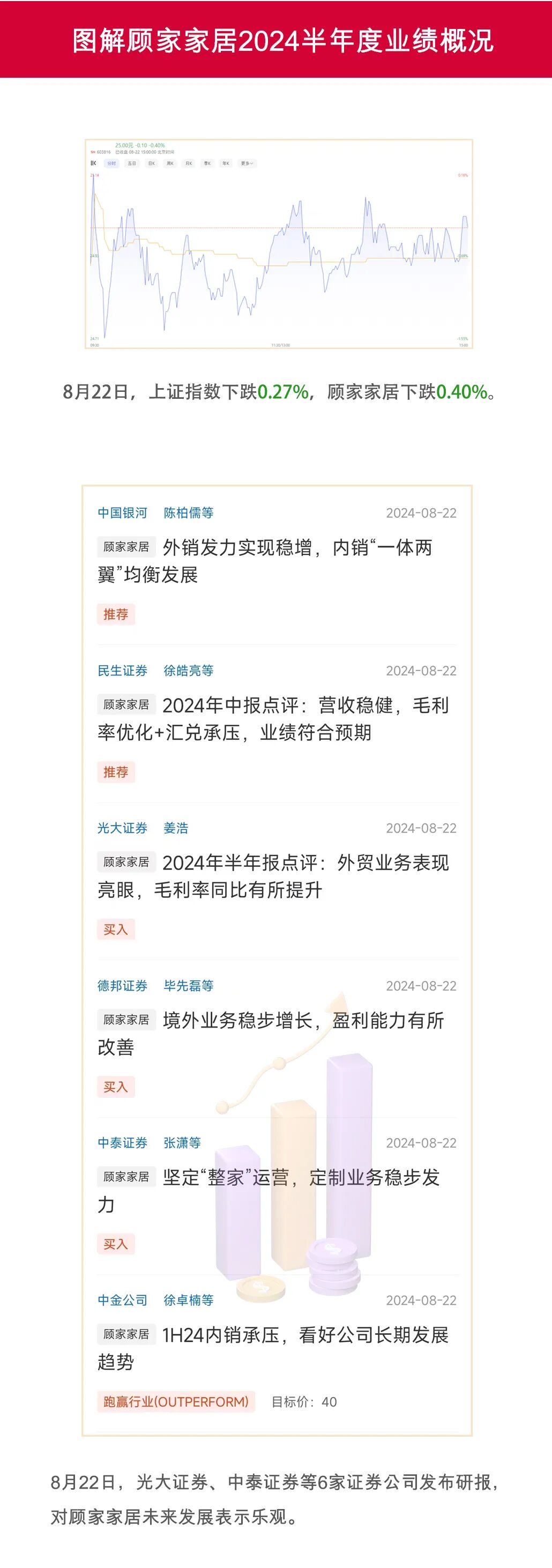 半年报发布隔日,顾家家居股价下跌0.40%,并获6家证券公司“买入”和“推荐”。