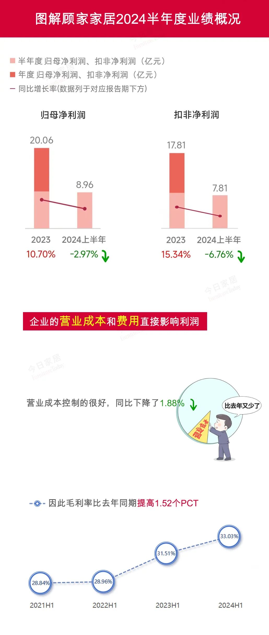 2024H1顾家家居归母净利润8.96亿元,同比下降2.97%;
