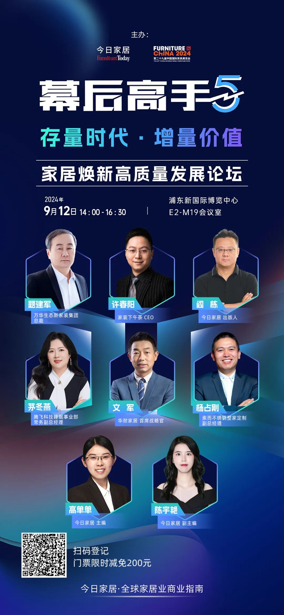 面对新格局、新人群、新业态下的新时代,本届“幕后高手”论坛,更加扣紧时代命题,以“存量时代,增量价值!”为主题,举办【幕后高手5·家居焕新高质量发展论坛】,云集家装及泛家居产业链细分领域的行业专家、企业高层,共同探讨新一轮大规模以旧换新的重大机遇,他们是: