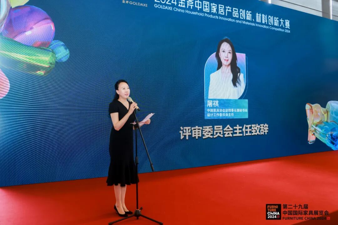 在致辞中,屠祺女士肯定了上海家具展的平台赋能,并谈及对“金斧大赛”的未来期望,“在上海展这个国际舞台,推崇前沿产品设计,洞察领先工艺材料,两大赛道并驱,探索展现家具多元化应用与创新,助力家具产业由‘中国制造’走向‘中国创造’。”