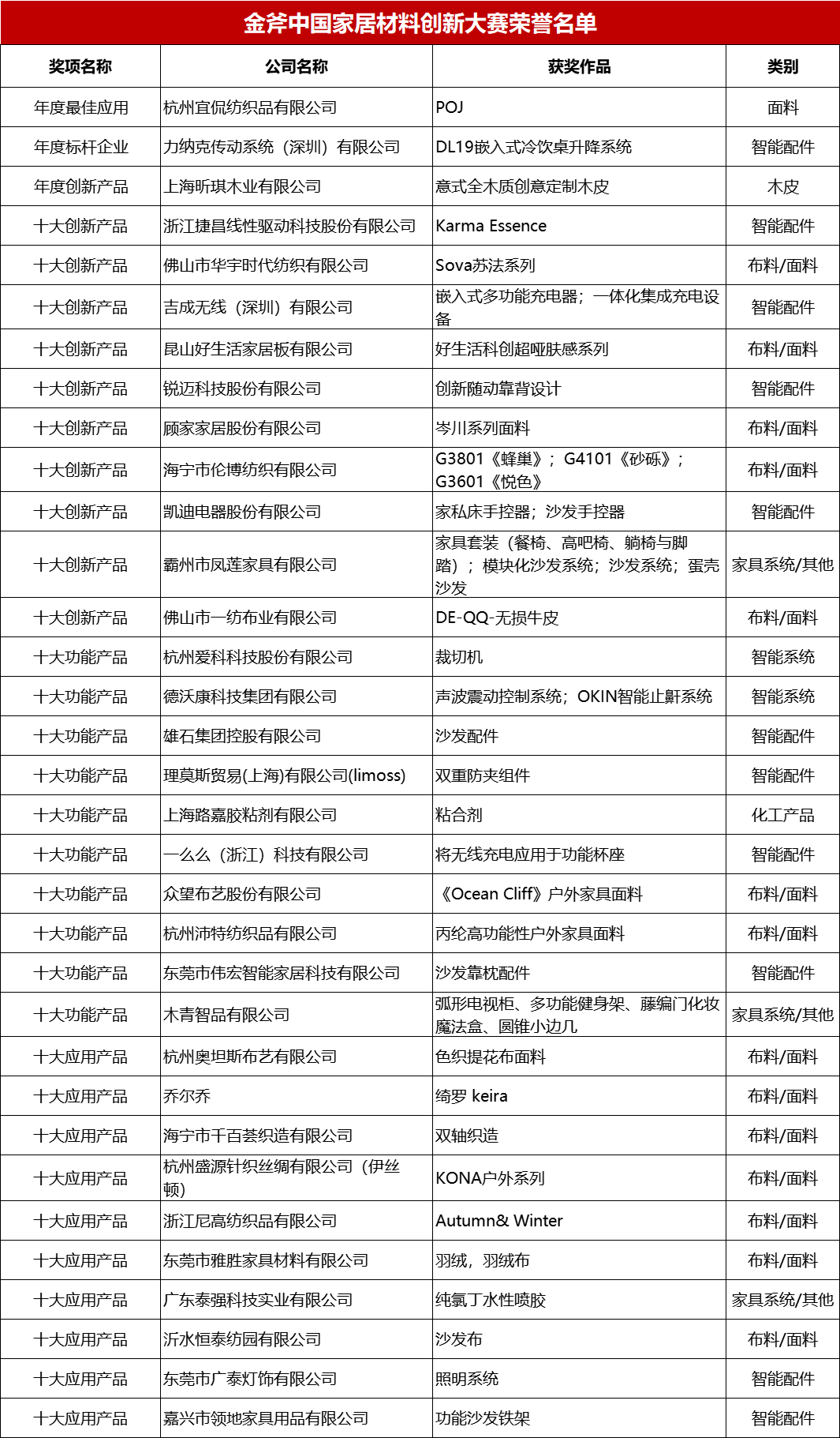 1、一批优秀企业从幕后走向前台,被行业所认知。包括布艺、木皮、铁架等等上游产品,长期以来“默默耕耘”。而从第一届“金斧中国家居材料创新大赛”的举办,到2024年的揭幕,每年诞生的荣誉企业,都成为行业的“明星”。