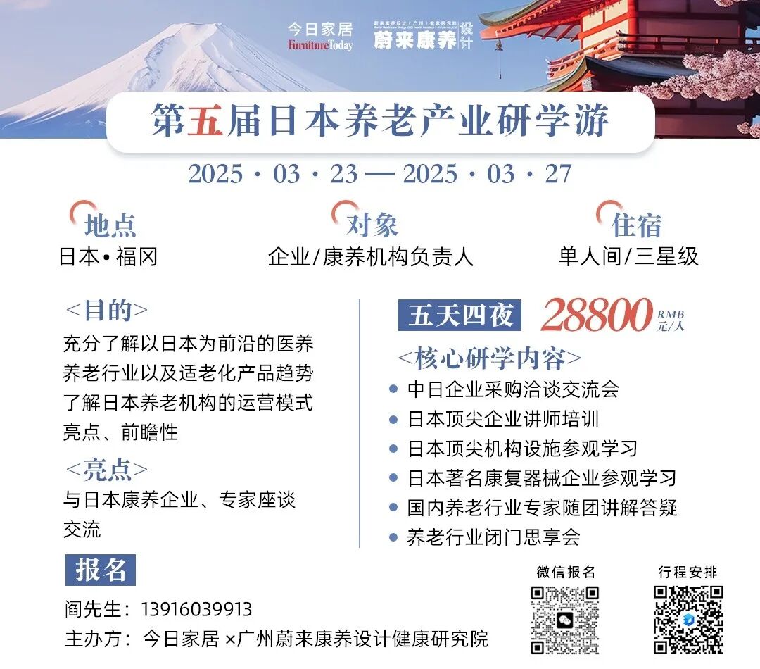 眼下,由今日家居联合蔚来康养推出的第五届日本养老产业研学游正在火热报名中,坐席有限,先到先得!