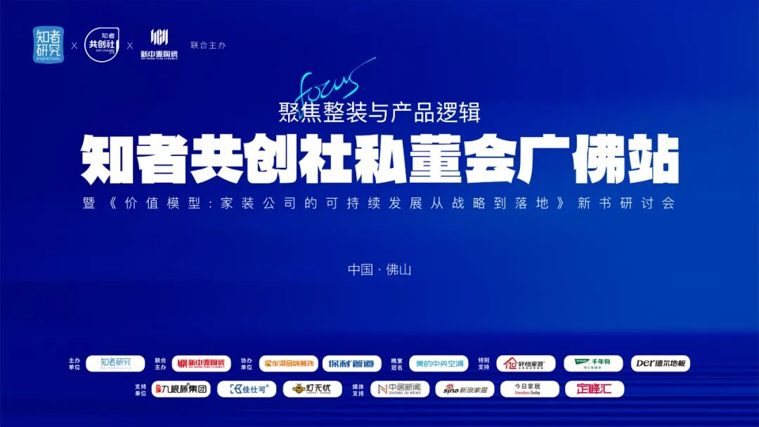 12月23日,以研讨“聚焦整装与产品逻辑”为主题的知者共创社广佛站私董会暨《价值模型:家装公司的可持续发展从战略到落地》新书研讨会在佛山举办。行业上下游大咖齐聚一堂,一起探寻在家装家居行业洗牌周期内企业发展的破局之道。