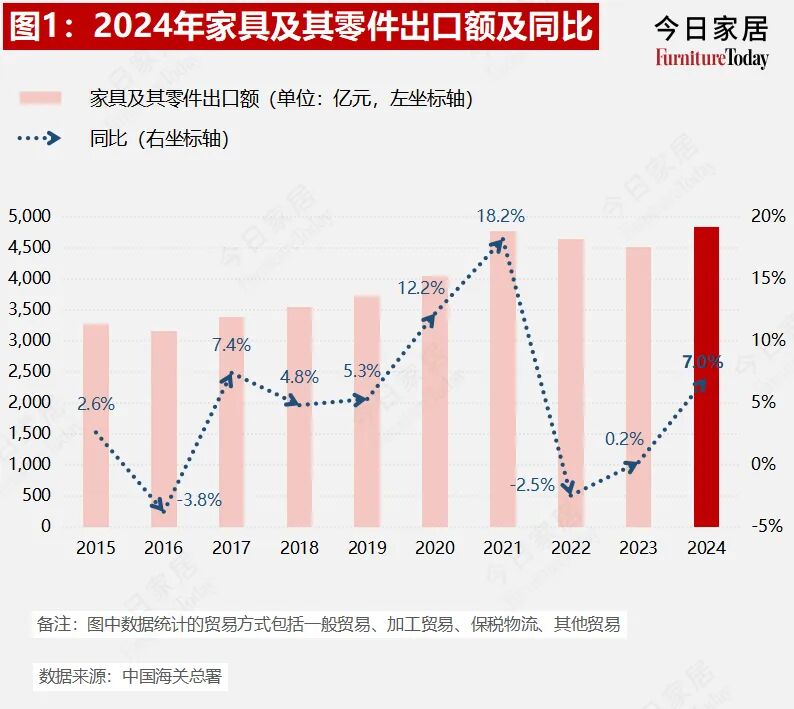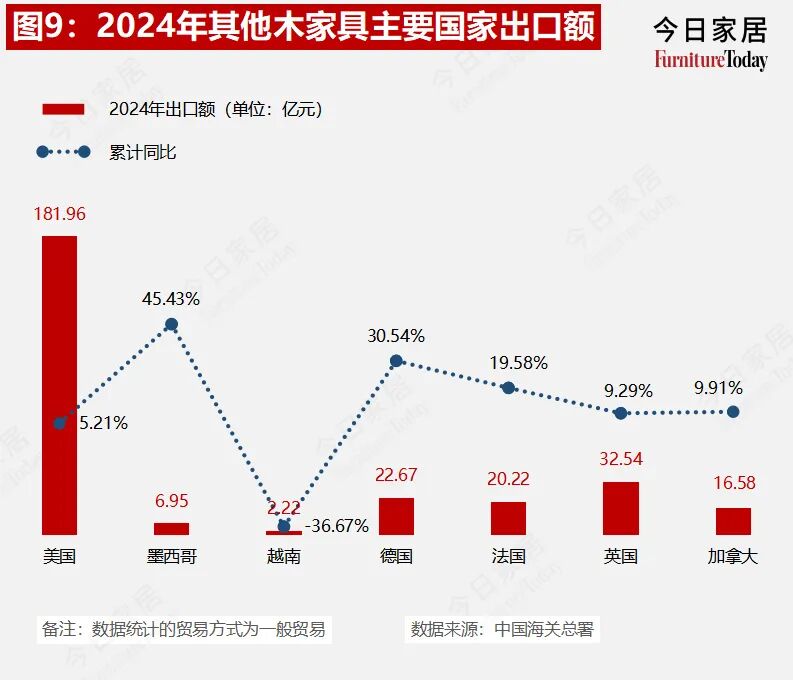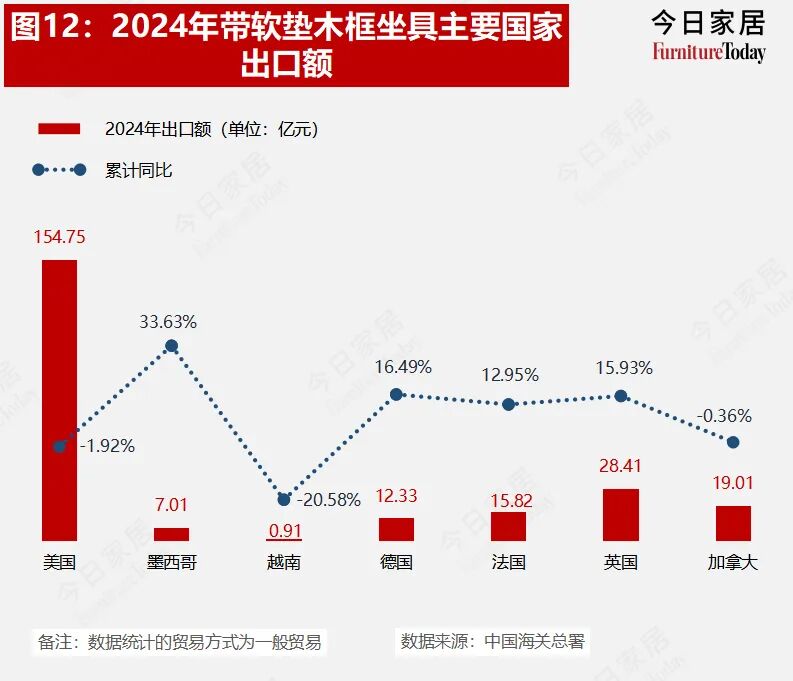 2024年中国家具出口,多类目实现增长,越南同比下滑