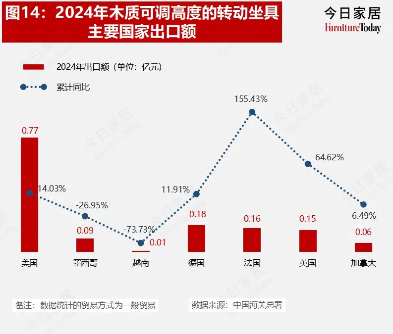 (3)木质可调节高度的转动坐具增长23.94%,法国激增155.43%