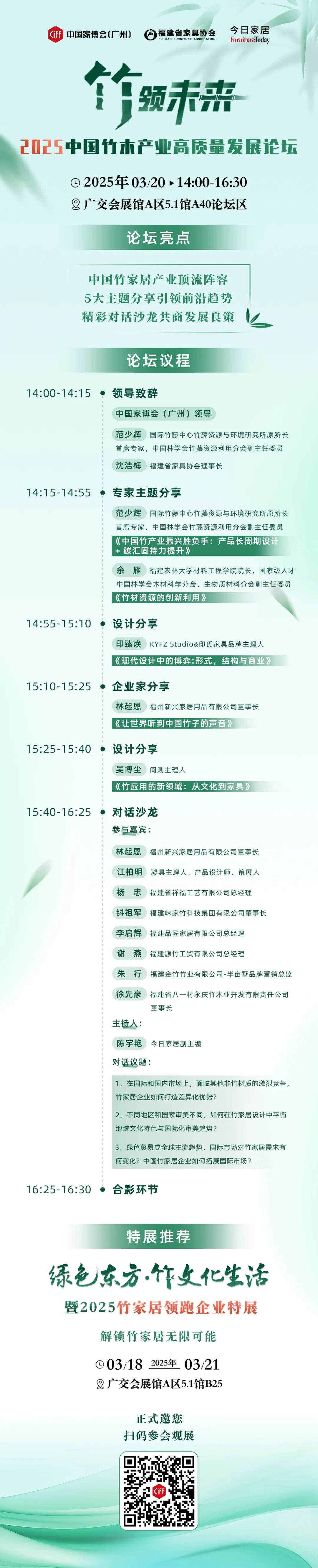 3月20日,由中国家博会(广州)、福建省家具协会、今日家居联合出品的“竹领未来・2025中国竹木产业高质量发展论坛”即将召开,有望为产业高质量发展提供思路与方向。