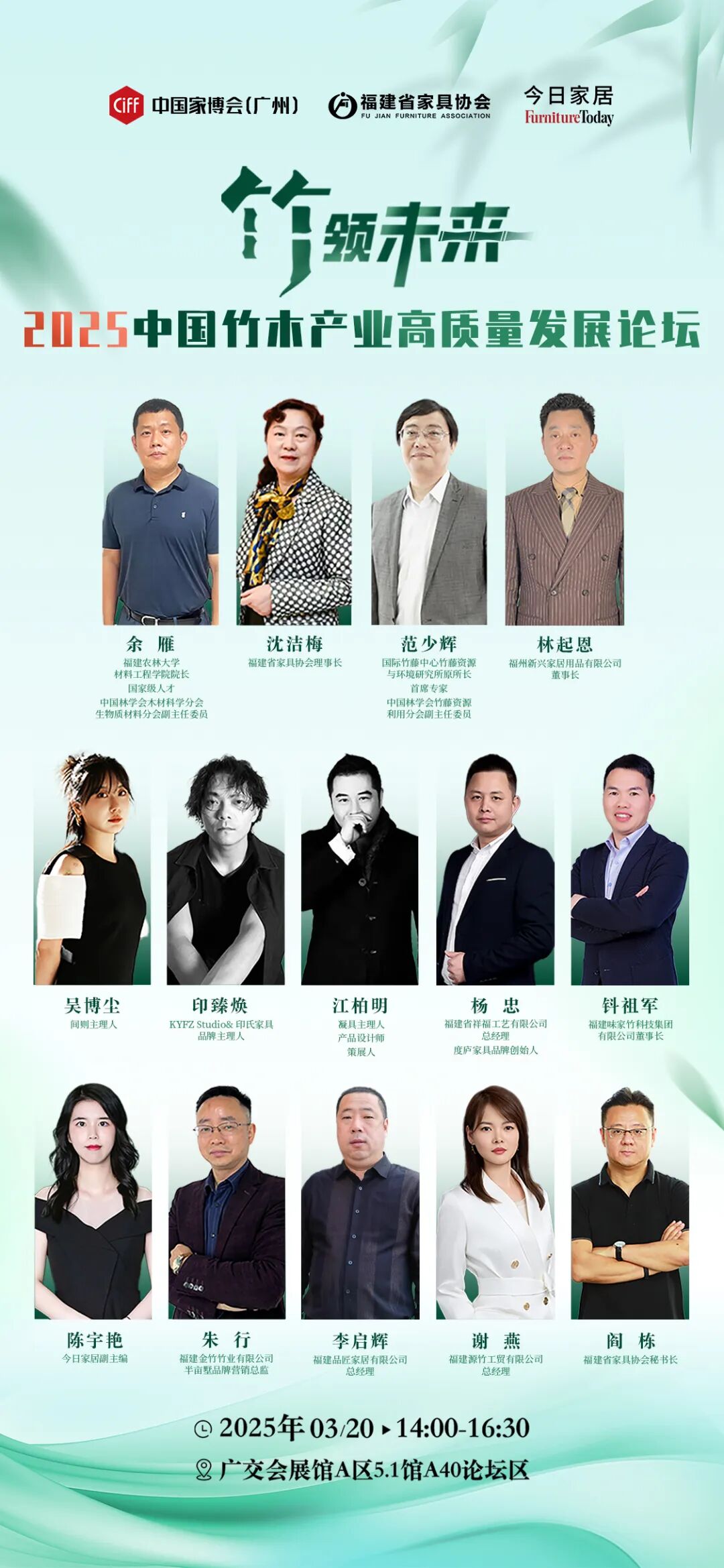 本次“竹领未来・2025中国竹木产业高质量发展论坛”的一大亮点,便是汇聚了中国竹家居产业的顶流阵容,不仅有在竹藤领域深耕多年、专业精湛的权威专家,还有引领行业潮流、富有创新精神的设计先锋,更不乏在竹家居市场中占据重要地位、具有卓越影响力的头部企业家代表等。