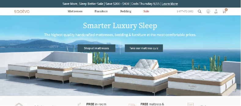 豪华床垫网上零售商,成立于 2010 年,提供内弹簧、乳胶、记忆绵和混合选项。此还提供基础床架、可调节床架和其他卧室家具和床垫。该公司在巴尔的摩、纽约、华盛顿特区、旧金山、洛杉矶、圣迭戈、康涅狄格州西港、芝加哥、佛罗里达州奥兰多、波士顿、达拉斯、休斯顿、北卡罗来纳州夏洛特、俄勒冈州波特兰、费城、新泽西州帕拉默斯、纽约州曼哈塞特和西雅图设有展厅。2023 年 11 月,Saatva 与其长期合作的美国床垫供应商合并了。