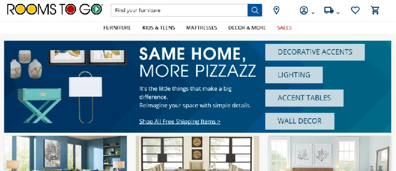 2023 年,Rooms To Go 在美国经营 152 家门店,在波多黎各还有几家加盟店。2023 年的净销售额为 35 亿美元。Rooms To Go 旗下有 Rooms To Go、Rooms to Go Kids & Teens 和 Rooms To Go Patio 三个品牌,在经营直销中心和网上销售。床垫品牌包括 Beautyrest、Casper、Sealy、Serta、Therapedic、Tempur-Pedic、Stearns & Foster 和 Nectar。