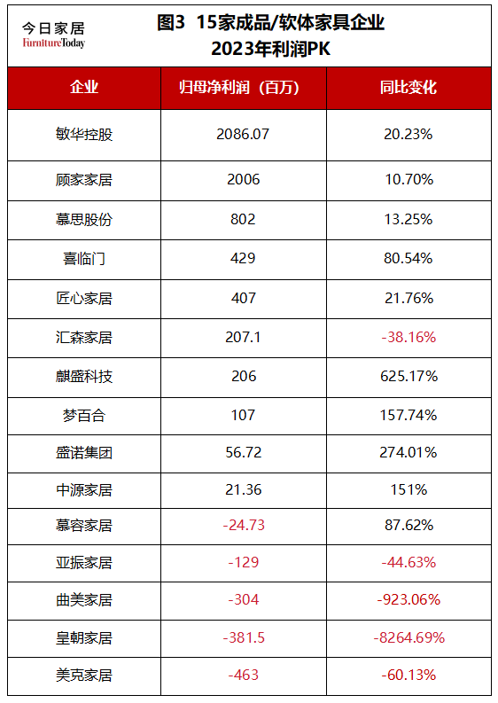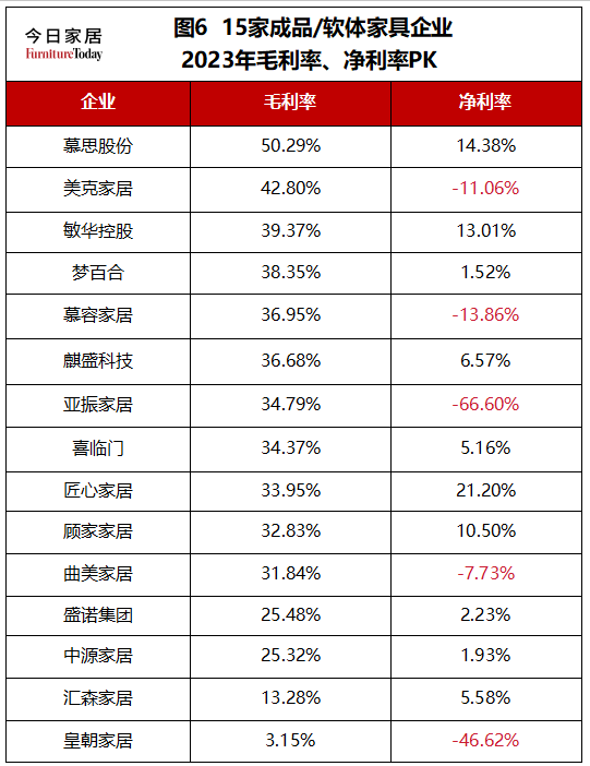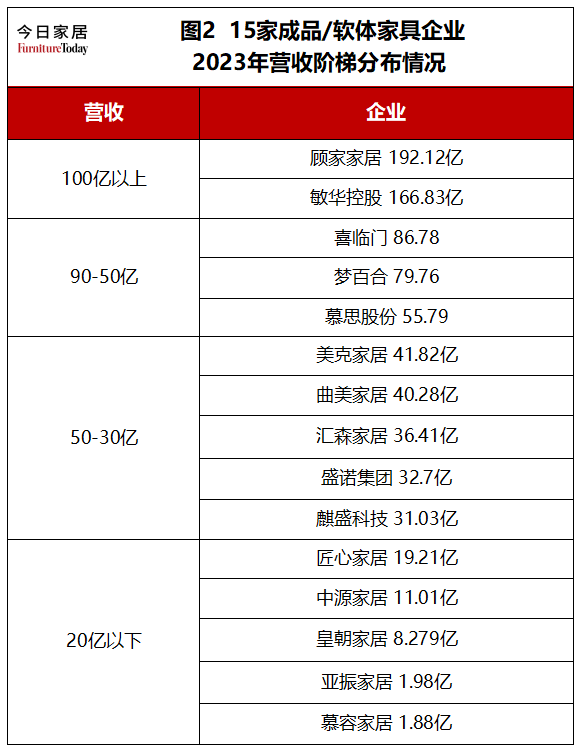 综合上述来看,15家企业中有8家企业实现增利又增收,表明2023年成品/软体家具市场环境不太理想的同时,业集中度在不断加强。