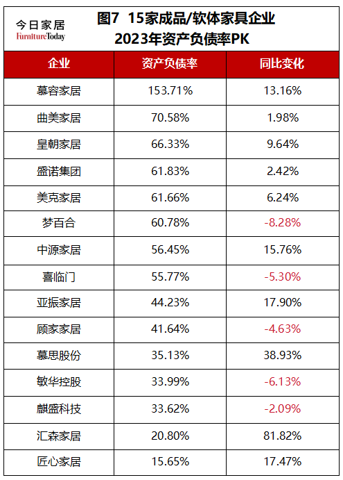 而资产负债率超过70%有2家企业:慕容家居、曲美家居的资产负债率分别为153.71%、70.58% 。