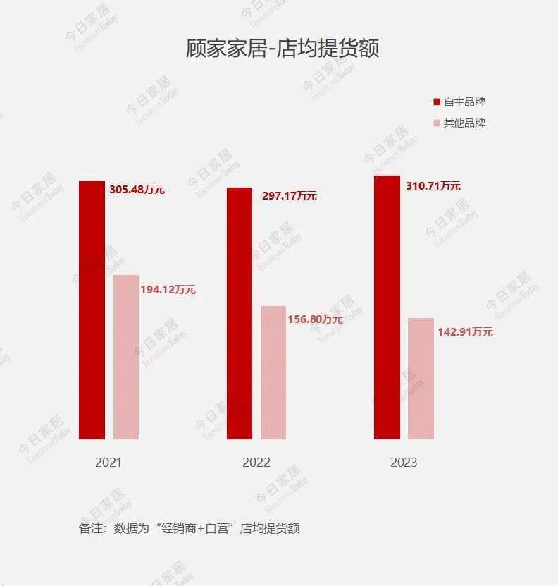 2023年顾家家居自主品牌的店均提货额为310.71万元,较2022年度略微增长;其他品牌的店均提货额为142.91万元,较2022年度减少。