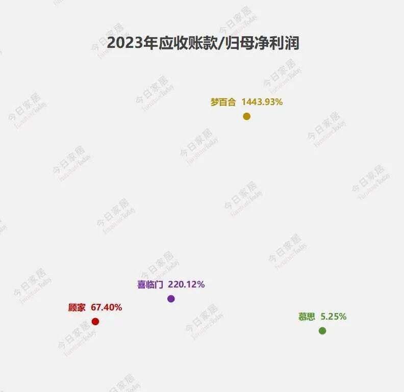 2023年度四家企业应收款占归母净利润比分别为:顾家家居67.4%,喜临门220.12%,梦百合1443.93%,慕思5.25%。