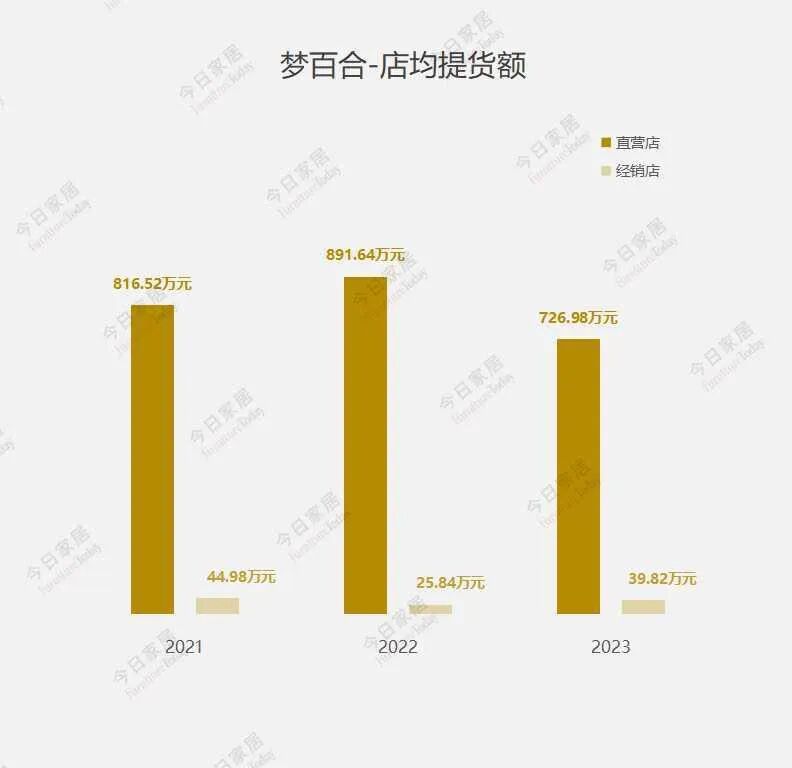 2023年梦百合直营店的店均提货额为726.98万元,较2022年下降18.47%;经销店的店均提货额为39.82万元,较2022年增加54.1%。