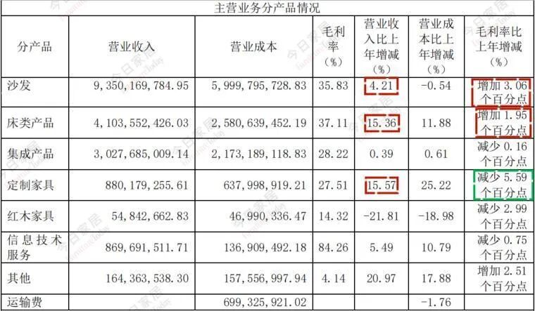 从顾家家居各类产品看,沙发和床类产品是顾家的优势,2023年度营收&毛利率双增长。