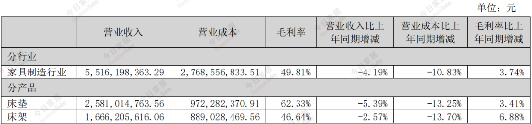 慕斯股份 2023年度营收55.79亿元,同比下降4.03%,主因是慕思中断了与欧派家居的直供业务。