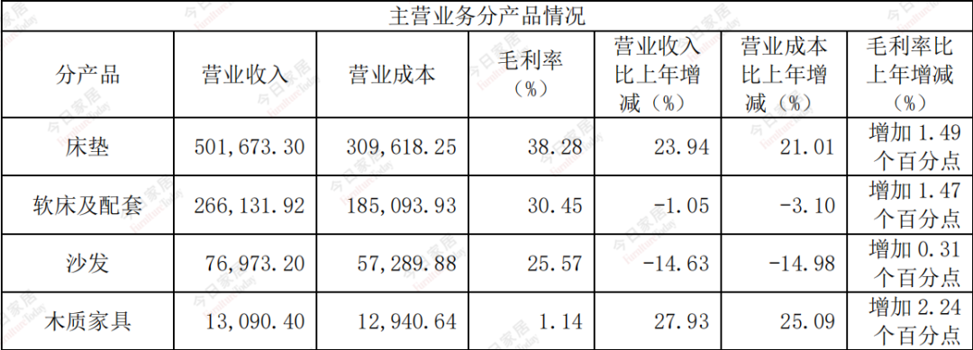 2023年喜临门积极促进与酒店的合作及线上销售业务,使得床垫品类的营收同比增长了23.94%。同时,喜临门降本增效也提升了各品类的毛利率。